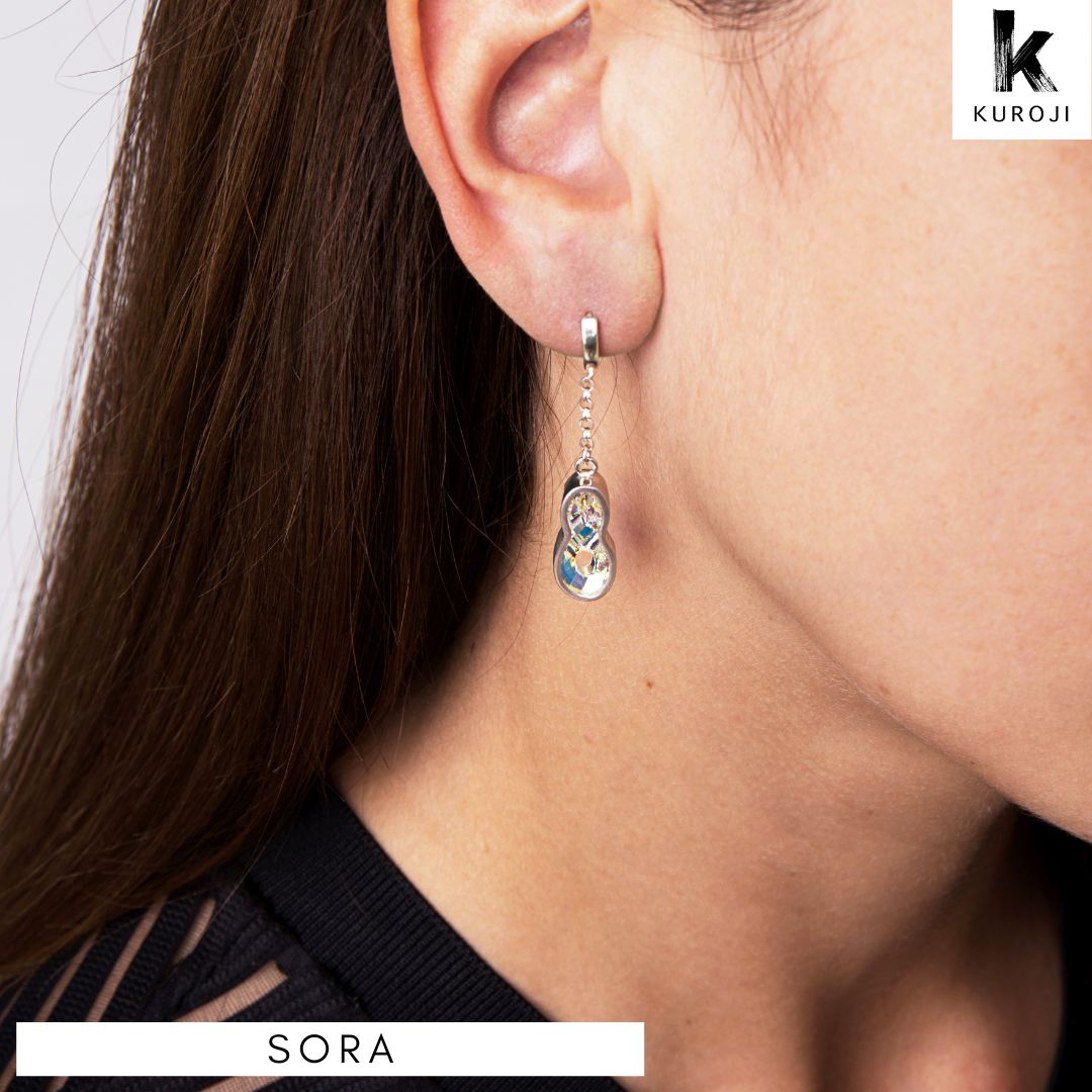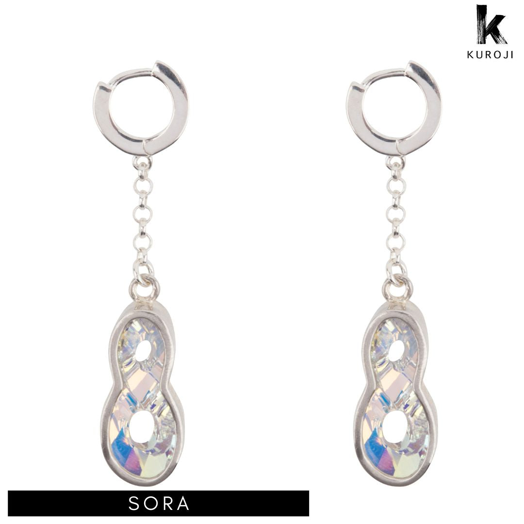 De Sora oorbellen zijn prachtige handgemaakte oorbellen van sterling zilver met grote infinity kristallen, verkrijgbaar in zwart (Kuro) en wit (Shiro). De kristallen hangen aan kleine sterling zilveren ringetjes van 1 cm, die voorzien zijn van een gebruiksvriendelijk hefboommechanisme.